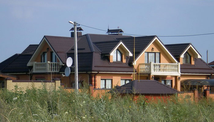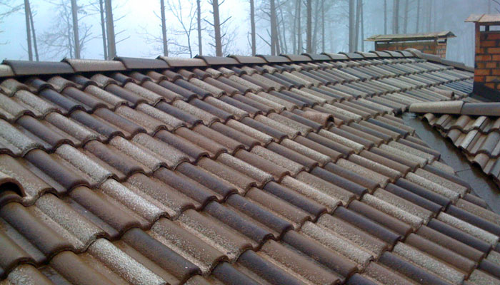 - Змонтована цементно-піщана черепиця з декоративними коньковими деталями і елементами для провітрювання.
