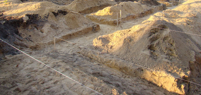 - Будь-яке будівництво починається з планування. Виконується посадка будинку на ділянку по схемі генплану. Спеціальною технікою викопується котлован або траншеї. Відбиваються відмітки низу залягання фундаменту.