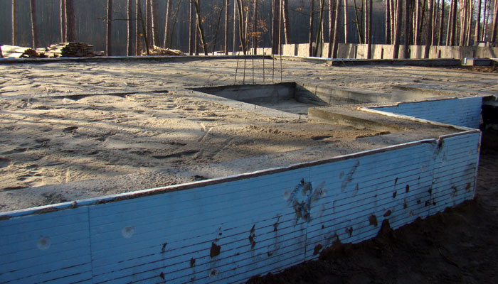 - Виконується щебенева, піщана або бетонна підготовка під фундаменти. В даному випадку підготовка виконана з бетону класу В7, 5.