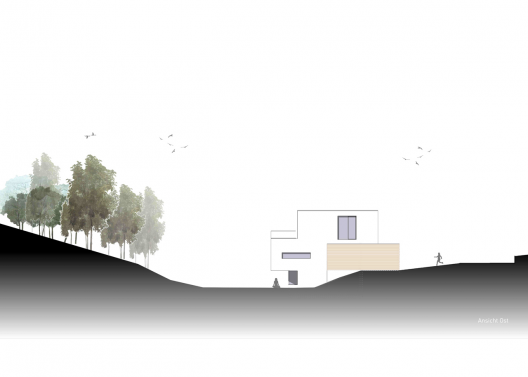 Одним з важливих особливостей - це ідея використати існуючий схил з південної сторони, тим самим як би відділити будинок від міського середовища, створивши затишну рекреаційну зону.