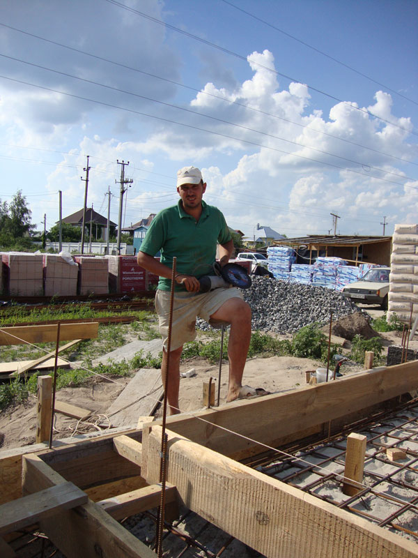 28 травня 2013Фундаменти були залиті ще восени минулого року, тому зараз можна сміливо приступати до кладки блоку та улаштування бетонної плити підлоги.